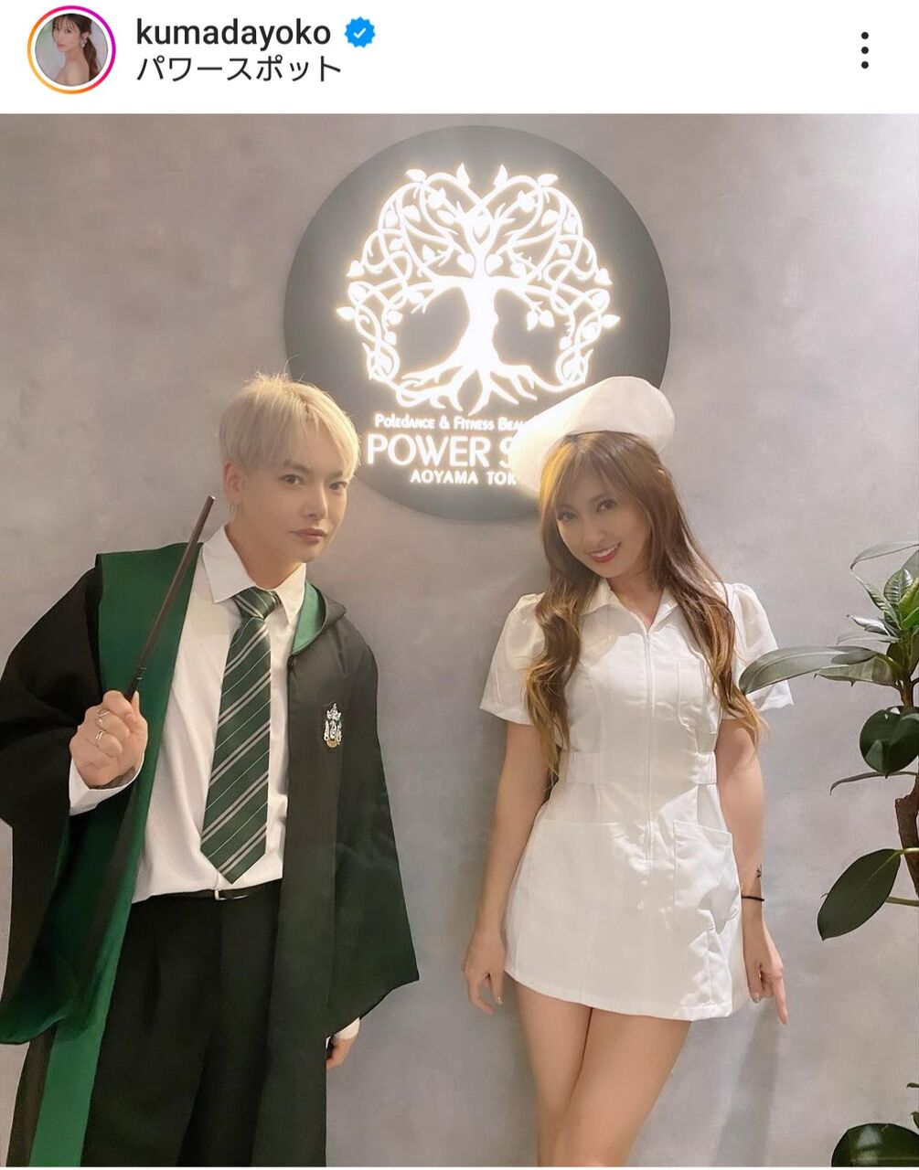 SNS上で、ポールダンスの上達ぶりをたびたび報告している熊田。「愛する亮太先生」と記し、ポールダンスの先生との2ショットを披露した。