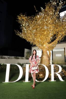 2024年クルーズ コレクションで、赤色の蝶柄をあしらったバタフライモチーフドレスにバッグ「レディ D-ジョイ」を合わせた。「赤はあまり着ないので気持ちが高まります」とにっこり。